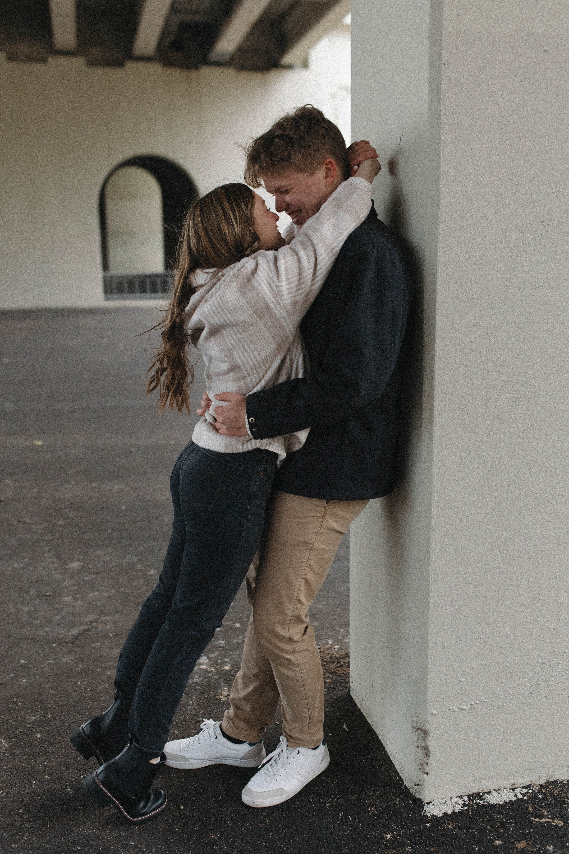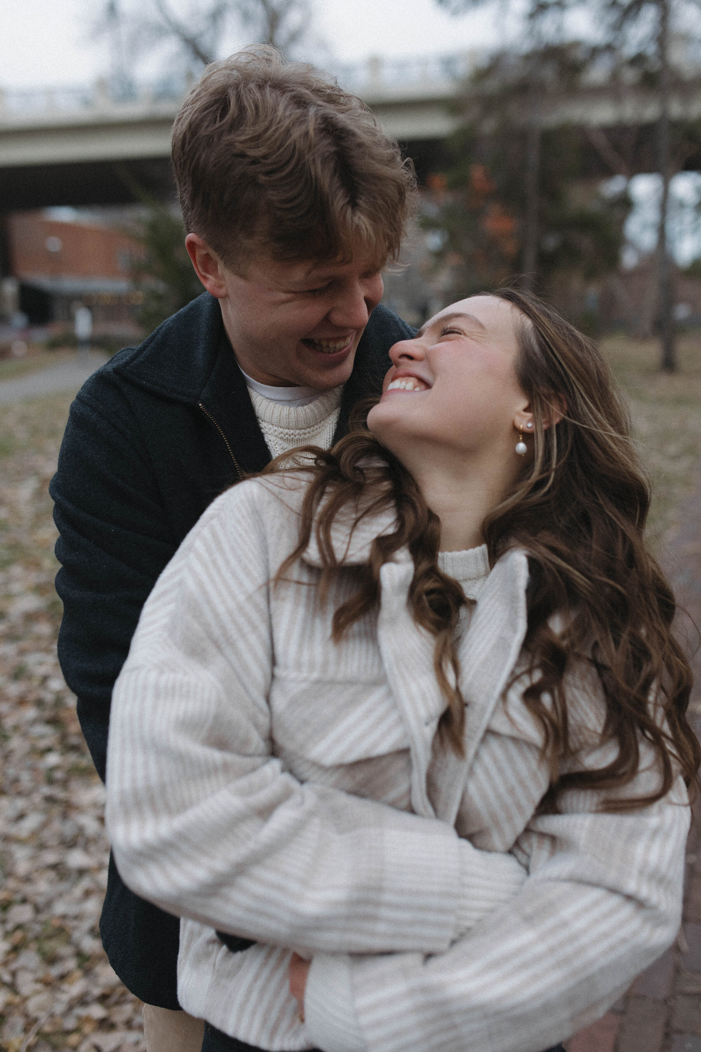Spending an afternoon on St. Anthony Main, we tapped into the playful energy that Clara and Dylan have when they are with each other. These high-school sweethearts have a love that is both timeless and forever young. We ran down cobblestone roads, climbed on rocks and benches, danced under bridges, and celebrated with some save-the-date wedding cake.